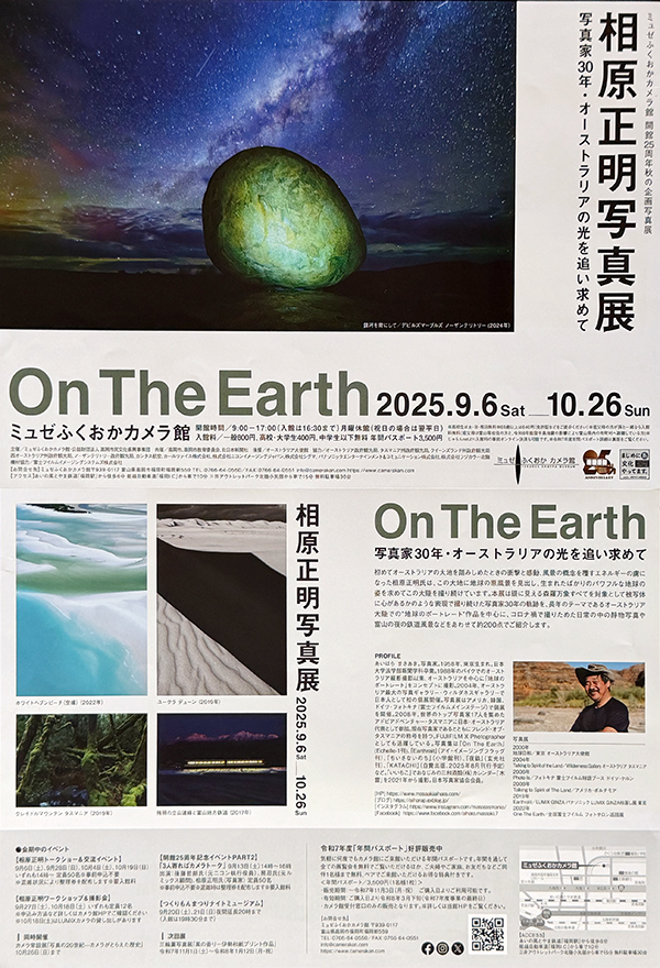 相原正明写真展 site 2025年10月2日2025年10月2日 On The Earth (オーストラリアの光を追い求めて)2025.9.6~10.26 ミュゼふくおかカメラ館 開館時間/9:00~17:00 入館料/一般800円、高校・大学生400円、中学生以下無料 年間パスポート3,500円